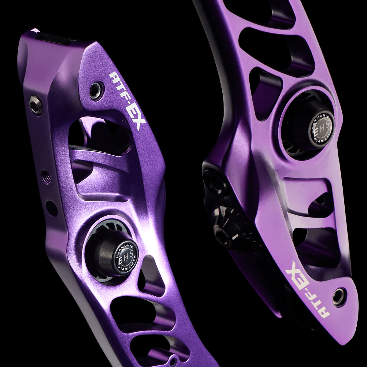 ATF-EXは、上下のリムポケットの背面にウエイトとダンパーを取り付けられるように設計されています。これにより、シューティング時に発生する振動を抑制できます。また、ハンドルの重量バランスは、アーチャーのシューティングスタイルや好みに合わせて自由に調整できます。